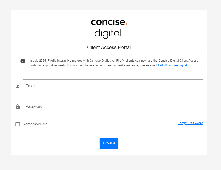 Access CAP via https://clients.concise.digital and login with your email address and password.