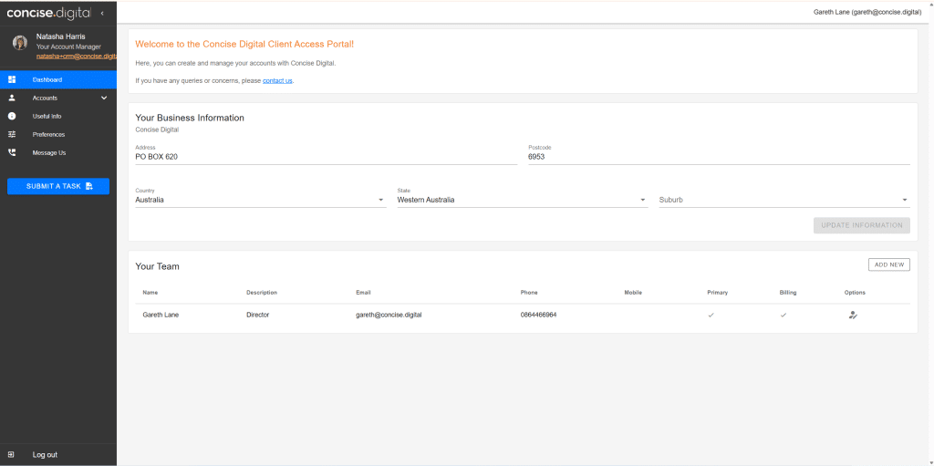 1. Company Account with Concise Digital – if you are a client of Concise or Firefly, you will have one of these already