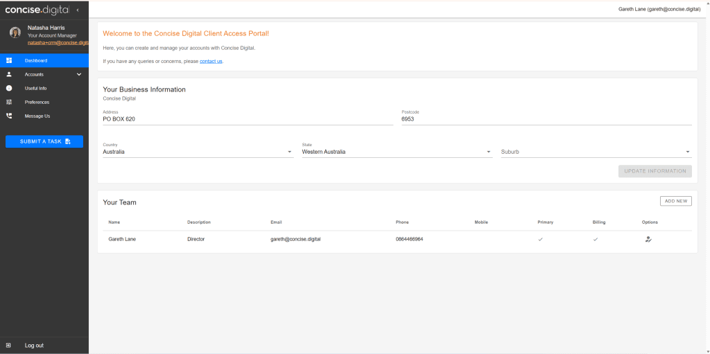 1. Company Account with Concise Digital – if you are a client of Concise or Firefly, you will have one of these already