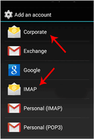 2. Now tap on the “Corporate” or the “IMAP” email icon. Both are the same.