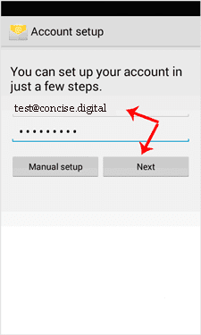 3. In the account setup, enter your full email address such as “[email protected]” and your email password. Then Tap on the “Next option.