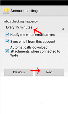7. If you want to change the inbox sync frequency, then do it. Otherwise, tap on the “Next” button.