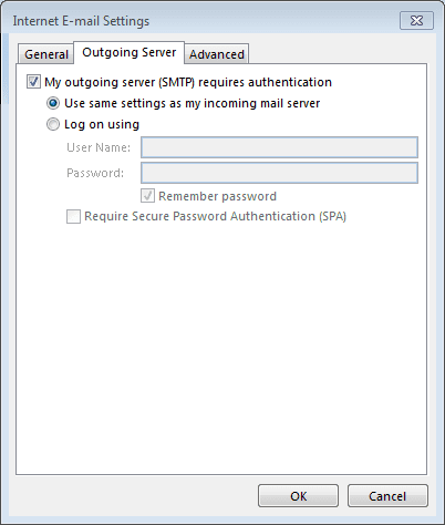 In the tab Outgoing Server check mark the option My outgoing server (SMTP) requires authentication > Use same settings as my incoming mail server: