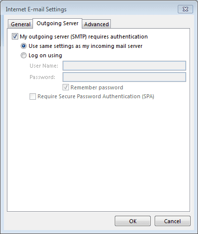 Require logon using Secure Password Notification (SPA): should be unchecked