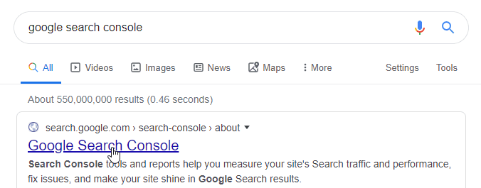 Step 1 – Go to Google and type in Google Search Console in the search bar