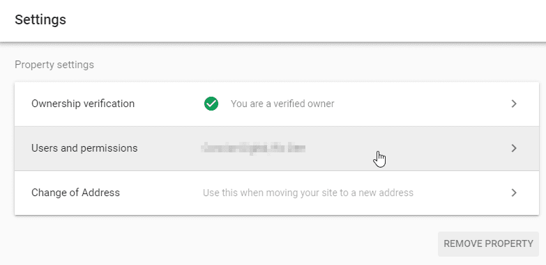 Step 5 – In the section labelled “Property settings”, click “Users and permissions”