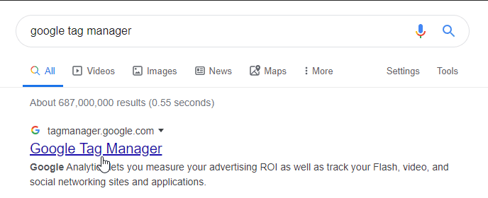 Step 1 – Go to Google and type in Google Tag Manager in the search bar