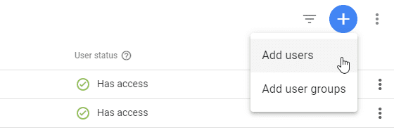 Step 5 – In the top right hand side click the blue + and click “Add users”