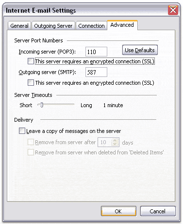 - POP / IMAP / SMTP ports: Usually, 110 for pop, 995 for pop ssl, 143 for imap, 993 for imap ssl, 25 for smtp and 465 for smtp ssl