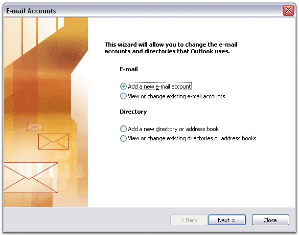 - Select ‘Add a new e-mail account,’ and click ‘Next.’