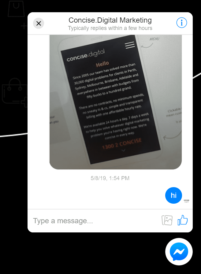 - Messenger can be easily customised to your business. This extends far outside simply changing colours and branding. You can create default replies and automatic prompts so it makes you look like you’re online 24 hours a day.