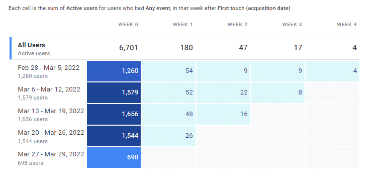 A cohort is a group of users who share a common characteristic identified by an Analytics dimension. For example, all users with the same Acquisition Date belong to the same cohort.
